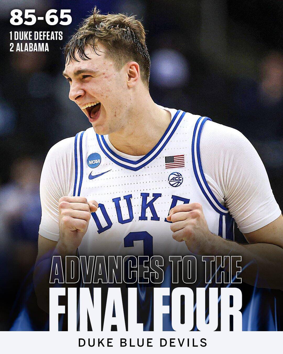 硬实力断层弗拉格16+9 杜克锁死阿拉巴马大胜20分晋级四强
