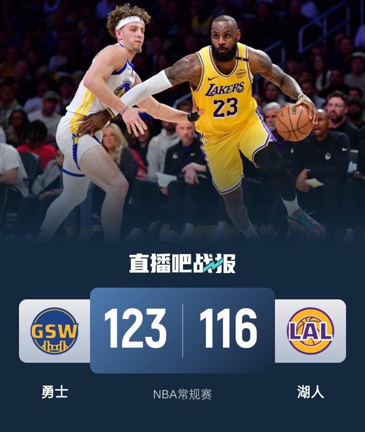 首节开局双方做足准备手感都非常火热,开场两队合计8个回合仅穆迪的上篮惨遭东契奇封盖,其余7个回合全部打成交替拿分;后半段轮换湖人替补端无法得分3分40秒里一分未得,勇士送上6-0的攻势抢占主动;次节波杰姆斯基和巴特勒领衔的轮换过度阵容发挥奇效送出12-2的攻势一举拉开两位数分差,末段面对湖人反扑,除了库里连续飙进三分外,波杰姆斯基拿下7分,最后命中压哨三分帮助勇士取得13分领先进入下半场。休息归来双方势均力敌拉锯,湖人这边前17分里12分来自于詹姆斯,另外4分来自于詹姆斯助攻,库里同样站出来单节16分为勇士确保10分左右的领先。这样的拉锯直到末节湖人送上11-2才有所改观,里夫斯单节轰下20分成为关键,但最后时刻库里和波杰姆斯基连续轰进三分重新拉开10分领先,巴特勒读秒制胜抢断锁定胜局。最终,勇士客场击败湖人拒绝被横扫,同时迎来4连胜。