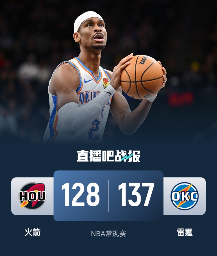 首节火箭虽然残阵但表现不差,他们以杰伦-格林为首多点开花抢占先机,节中一波13-2的攻势更是让他们占据主动拿到8分领先;不过防守端无力限制亚历山大,后者首节12投7中砍下20分带队咬住比分。次节状态延续对攻,雷霆虽然一度反超但也无力守住阵地,双方这一节再度砍下30+单节得分,雷霆依靠亚历山大的火热表现取得1分优势进入下半场。休息归来火箭在和雷霆短暂拉锯后突然哑火,雷霆抓住机会轰出17-2的攻势直接拉开两位数分差,亚历山大三节打完已经45分了;末节火箭没有让杰伦-格林登场,不过轮换阵容表现不错追至个位数保留希望,不过雷霆的首发阵容一直稳定输出收下比赛。最终,雷霆主场击退火箭迎来4连胜。