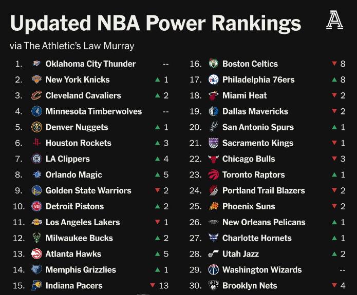 07月24日讯 经过NBA选秀大会、自由市场的洗牌, The Athletic记者Law Murray对联盟30支球队进行了排名更新(上一期是总决赛刚结束),并分为了五个等级。