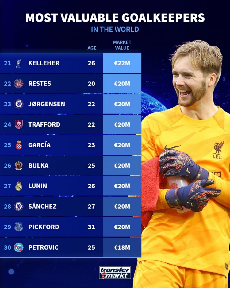 22、皮克福德(埃弗顿),31岁,2000万